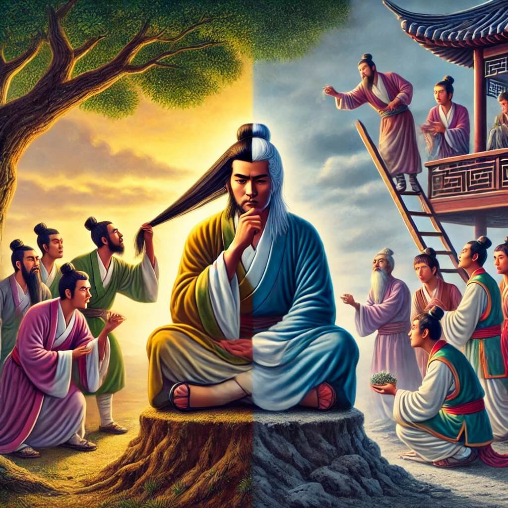 戰國時期,楊朱學派主張「為我」,而墨家則強調「兼愛」,兩者學說相互對立。在孟子看來,這兩種學說皆不可取。楊朱曾說過:「古之人,損一毫利天下,不與也;悉天下奉一身,不取也。人人不損一毫,人人不利天下,天下治矣。」對此孟子評價道:「楊子取為我,拔一毛而利天下不為也。」認為楊朱過於自私,注重個人利益遠大於蒼生的福祉。然而,若深入探討楊朱的思想可知,他的原意並非如此。楊朱主張「人人不損一毫,人人不利天下」,是希望每個人都能愛惜自身,不為謀取利益傷害自己;而珍惜生命的人自然不會為了獲取名利,傷害他人引來責罰。這樣,每個人的小世界安穩了,整個大世界自然也會達到和平與和諧。由此看來,楊朱學說其實心繫天下,並...