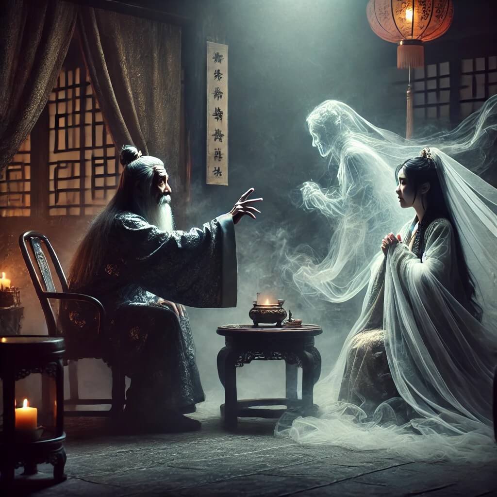 漢北海營陵有道人,能令人與已死人相見。其同郡婦,死已數年,聞而往見之,曰:「願令我一見亡婦,死不恨矣。」道人曰:「卿可往見之。若聞鼓聲,即出勿留。」乃語其相見之術。於是與婦言語悲喜,恩情如生。良久,聞鼓聲,恨恨不能得往。當出戶時,奄忽[注釋1]其衣裾戶間[注釋2],掣絕[注釋3]而去。至後歲餘,此人身亡,室家葬[注釋4]之。開塚,見婦棺蓋下有衣裾。12/26–1/31限時上架,請把握時間閱讀與練習