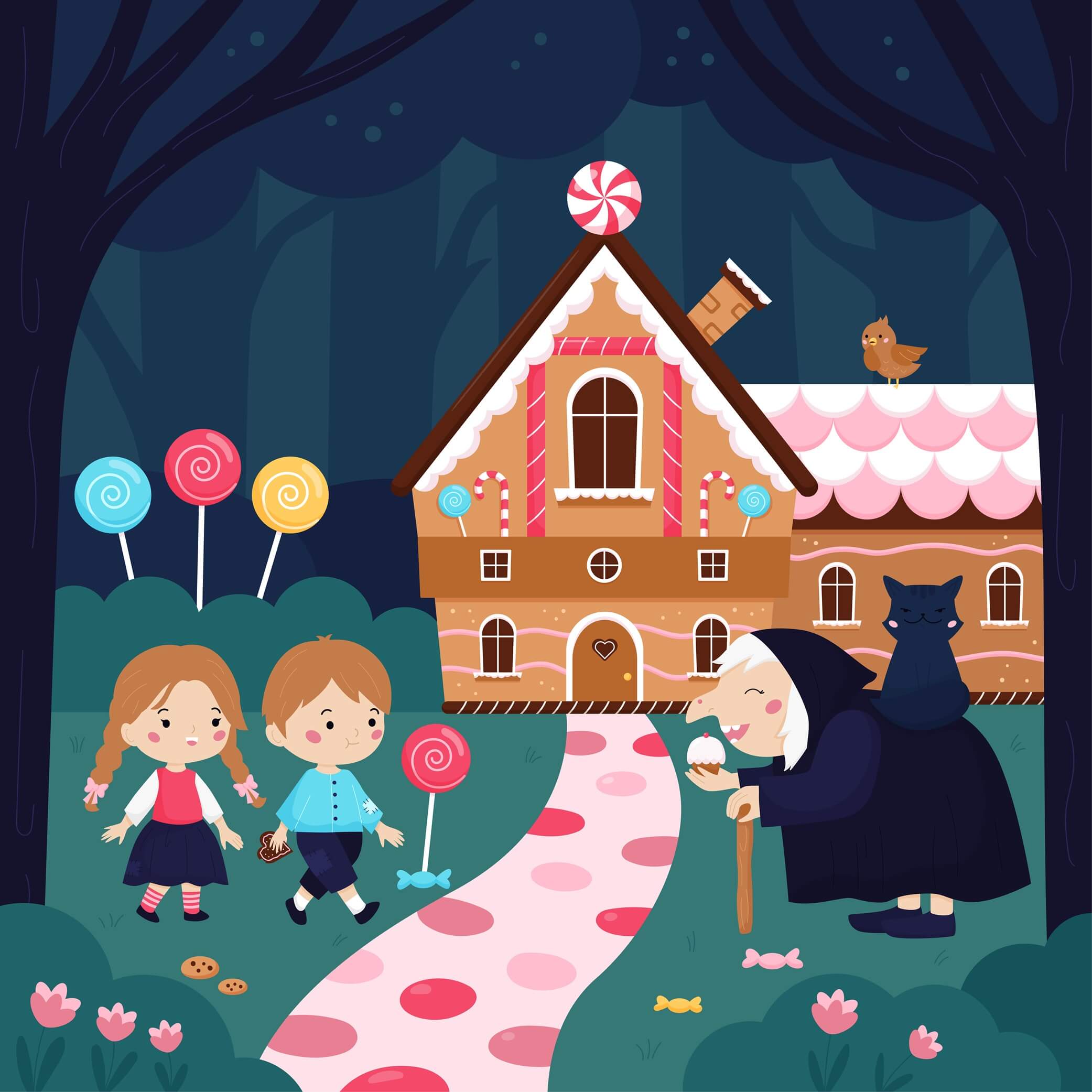 在一片森林旁邊,住著一位貧窮的樵夫,他和妻子還有一雙兒女過著清苦的日子。男孩名叫漢賽爾,女孩叫葛麗特。他們家裡的食物本來就不多,後來國內鬧饑荒,情況就變得更糟了。一天晚上,樵夫躺在床上,滿心憂愁的嘆氣,對妻子說:「我們該怎麼辦?連自己都吃不飽,還怎麼養孩子呢?」女人回答說:「你聽著,明天一早我們帶孩子到森林最深處,替他們生一堆火,給他們一小塊麵包,然後藉著去工作把他們丟下。這樣他們就找不到回家的路,我們也能擺脫他們。」樵夫搖頭說:「不行啊!我怎麼忍心把孩子丟在森林裡?野獸很快就會把他們吃掉。」女人卻罵道:「你這個蠢蛋!那我們4個人就只能一起餓死。你還不如準備棺材!」她不停的逼迫,樵夫也只好答應...